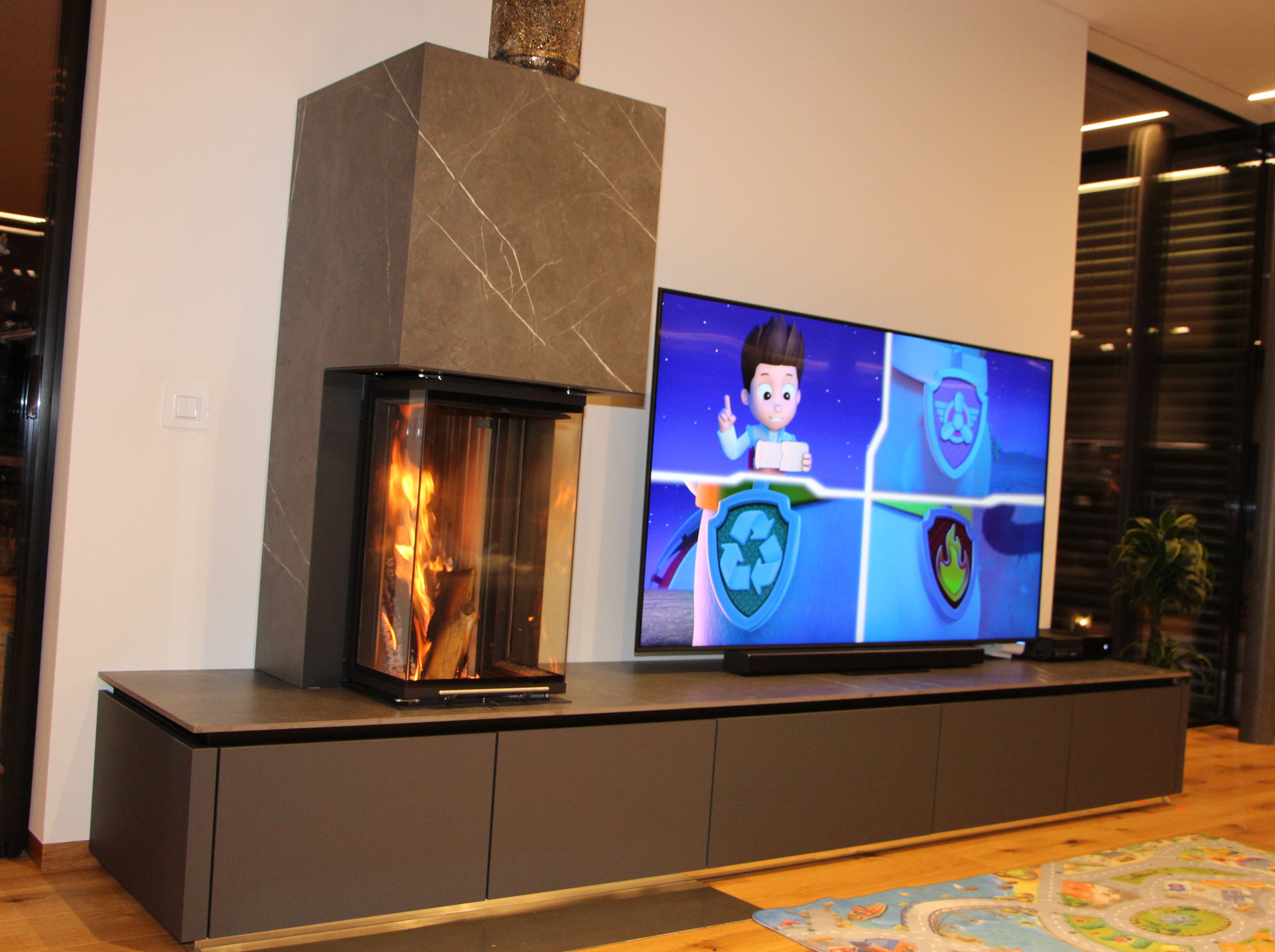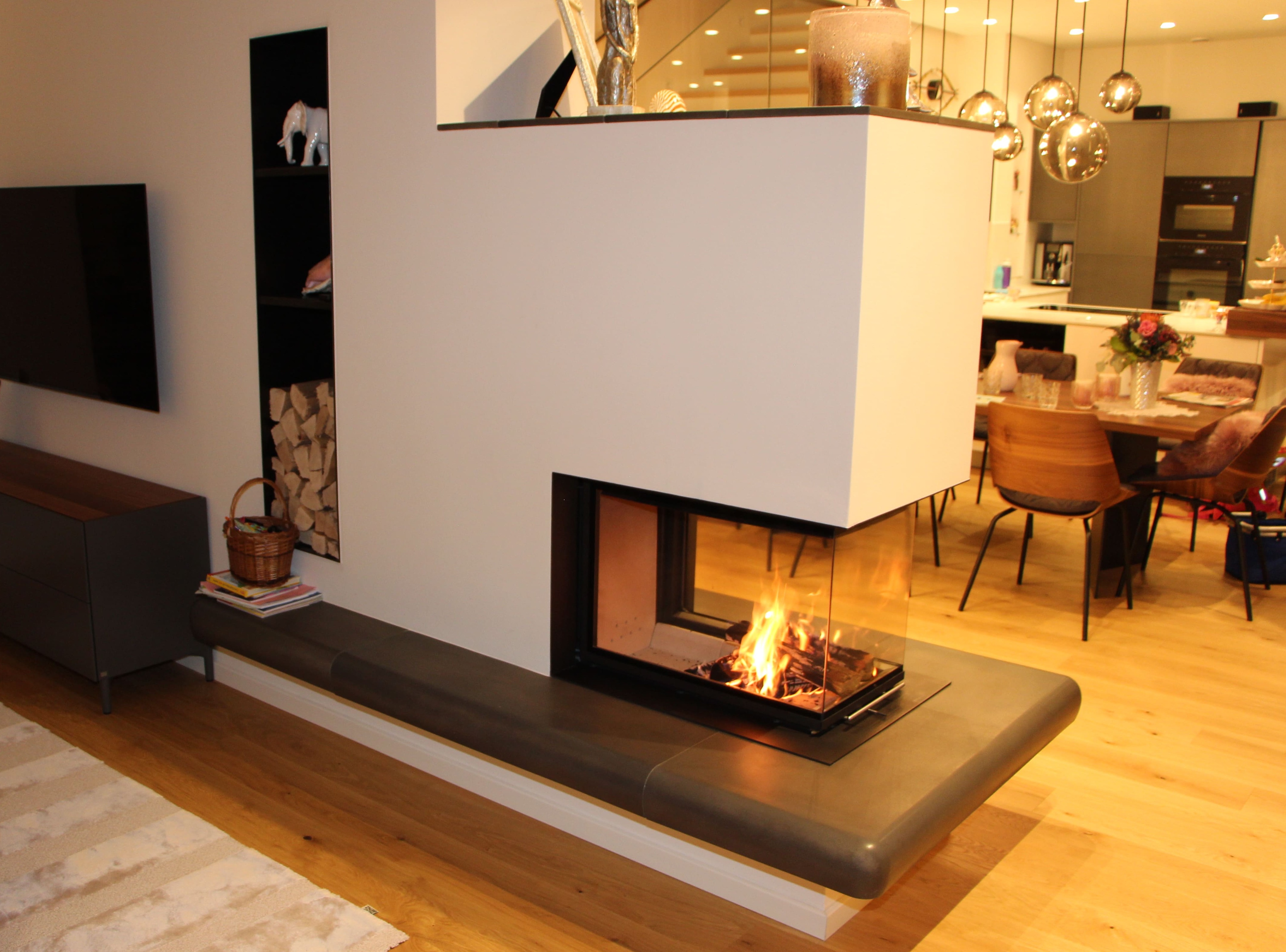 Der Kamineinsatz besticht durch seine große Glasscheibe. Das flackernde Feuer sorgt für entspannende Romantik. Die Wärmeabgabe erfolgt zum größten Teil über die Glasscheibe und Konvektion, ein geringer Teil wird über die Strahlungswärme abgegeben. Wohlbefinden und Entspannung sind durch die faszinierende Feueroptik garantiert.